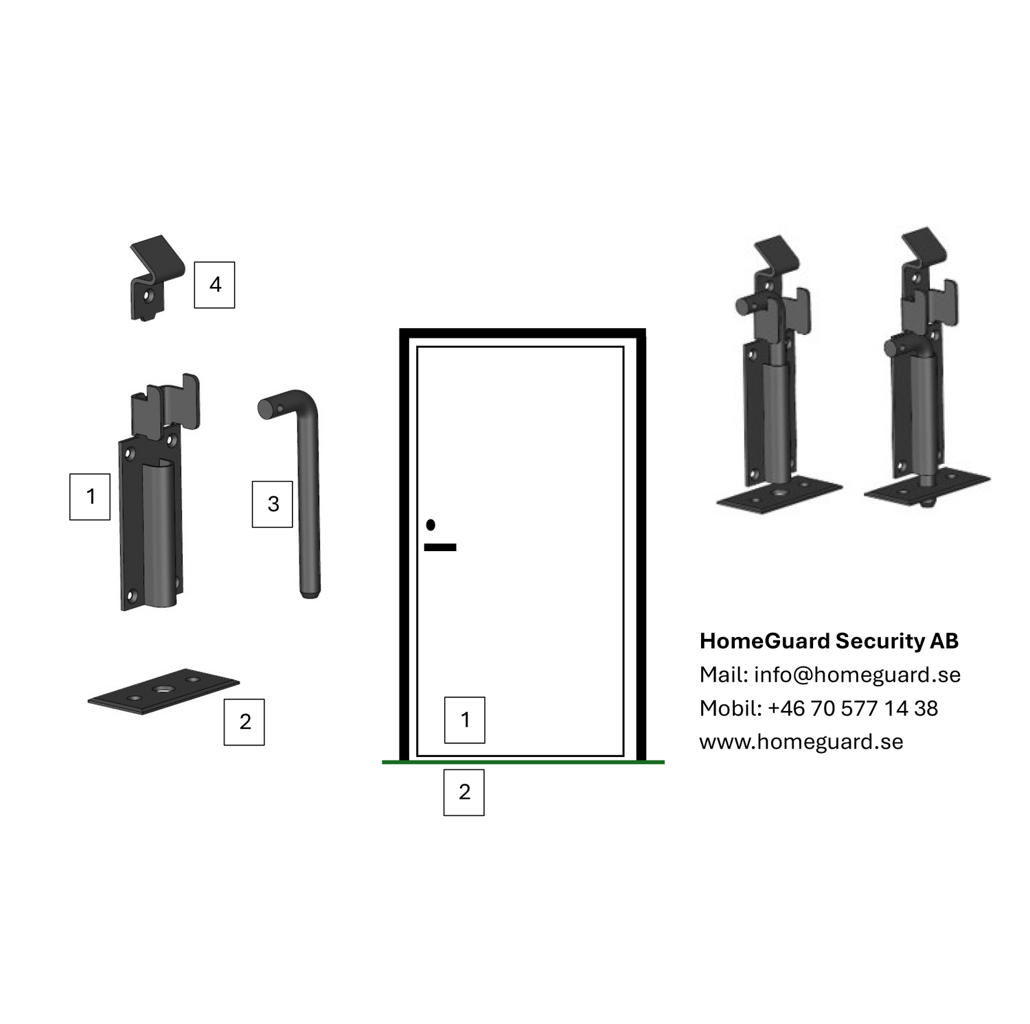 Snabb aktivering – På bara några sekunder kan du förstärka dörren och försvåra för en angripare att ta sig in.